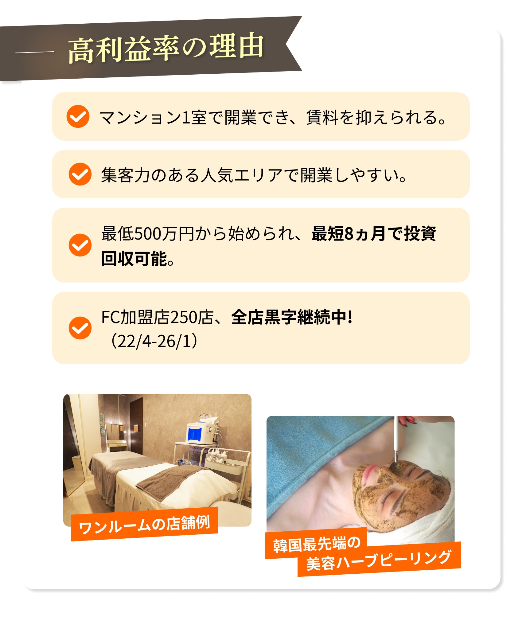 独立開業・フランチャイズ・代理店ならアントレ<毎週金曜更新!> 02/13更新全283件 [新着1件] ヘルプ 広告掲載をご希望の方 ログイン 会員登録無料 メッセージ お知らせ 気になる 閲覧履歴 独立情報を探す gnavi_list.htm 副業 ランキング 女性の独立 起業スクール コラム 業種から探す エリアから探す 契約タイプから探す 飲食デリバリー IT関連スマホ 修理クリーニング 小売コンビニ 塾スクール 美容サロンボディメイク 介護医療福祉 買取リサイクル 各種サービス 北海道 東北 関東 北信越 東海 関西 中国 四国 九州・沖縄 海外 フランチャイズ 代理店 業務委託 商材&事業支援 社員to独立 common_top.htm 独立、開業、フランチャイズTOP フランチャイズ 美容サロン・ボディメイク リラクゼーションサロン・エステ Belle/株式会社Limeの独立・開業情報 Belle/株式会社Limeのココに注目! closeup_top.htm Belle/株式会社Limeのココに注目!フランチャイズ Belle/株式会社Lime フェイシャルエステ専門サロン「Belle」 資料ダウンロード 説明会日程を見る closeup_main_top.htm 開業プラン 説明会日程 ココに注目! 企業概要 オーナーレポート 会社員の収入だけでは将来に不安を感じ、未経験から低資金で始められる副業を検討。加盟の決め手は、本部による手厚いサポート。開業後は5ヶ月で黒字化に成功し、8ヶ月目には2ブース目をオープン!1日30分の副業が大きな収入につながっています。 気になる 説明会日程を見る 資料ダウンロード 開業プラン 説明会日程 ココに注目! 企業概要 オーナーレポート closeup_main_bottom.htm closeup_bottom.htm common_bottom.htm common_footer_middle.htm common_footer_bottom.htm