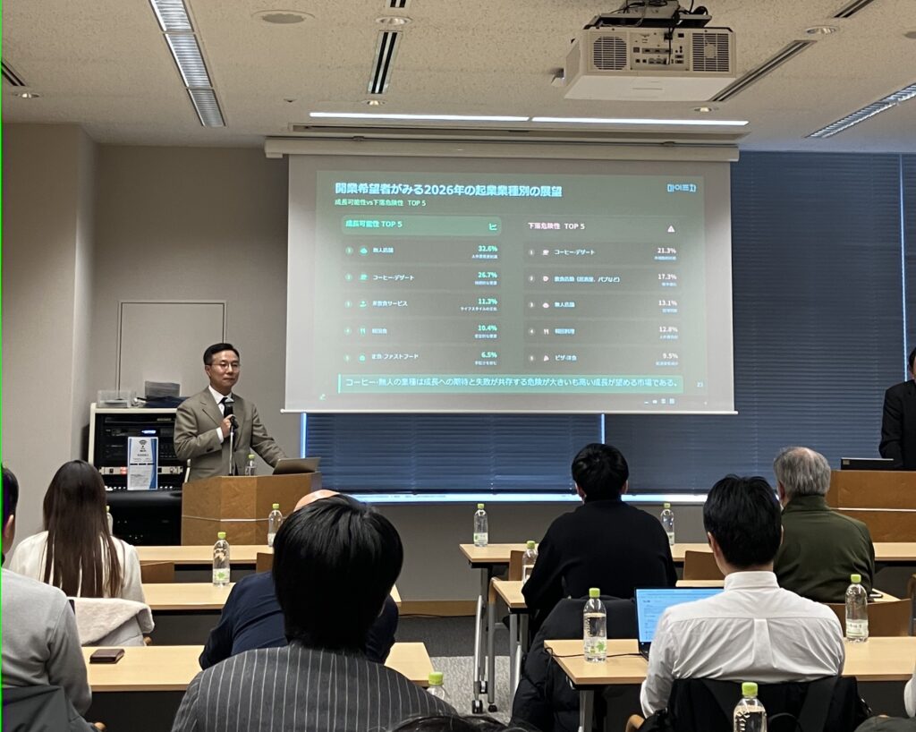 日本開催回では、韓国最大級のフランチャイズ創業プラットフォーム 「마이프차(マイフチャ)」を運営するマイフランチャイズ社代表 キム・ジョンヨン氏が登壇しました。
