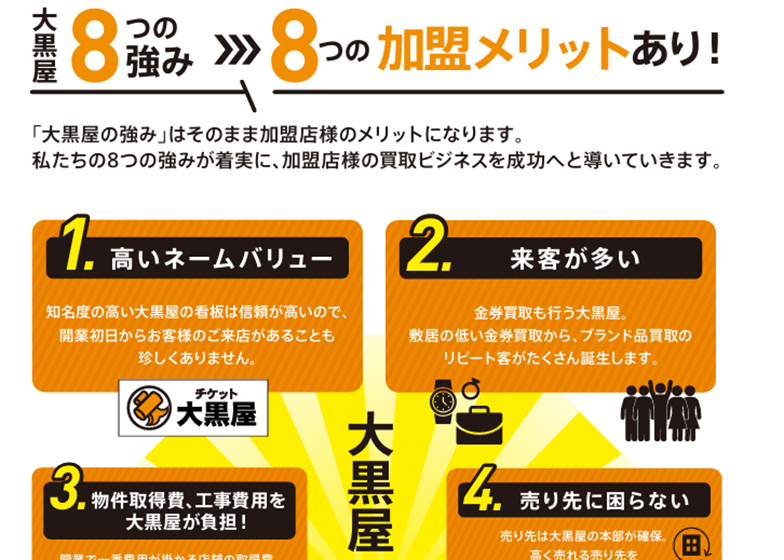株式会社大黒屋のフランチャイズ開業プランフランチャイズ