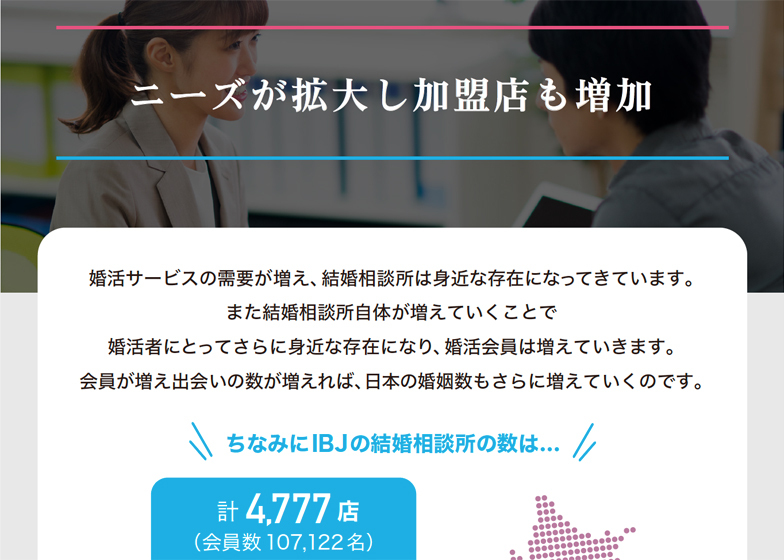 - 独自の婚活システムや月30件以上の研修等、多くの加盟店にIBJが選ばれる理由を公開!