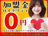 - ●学歴・年齢・経験一切不問。未経験者大歓迎。自宅開業できます●婚活ビジネス・結婚相談業に興味のある方はどなたでもご応募ください。本業にも副業にも、どちらにも適しているビジネスです。