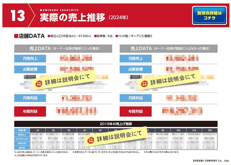 絶対的な自信があるから、加盟される方には全てのノウハウを共有します。オープンまでの物件選定、市場調査、内装工事、施術者の募集、HPインフラ構築、集客戦略などはオーナー様に寄り添い全てをサポートします。収益実績など説明会でしかお話ししていない部分もありますので、是非この究極の副業モデルの詳細をお聞きに来てください。きっとわくわくするお話ができると思いますよ!