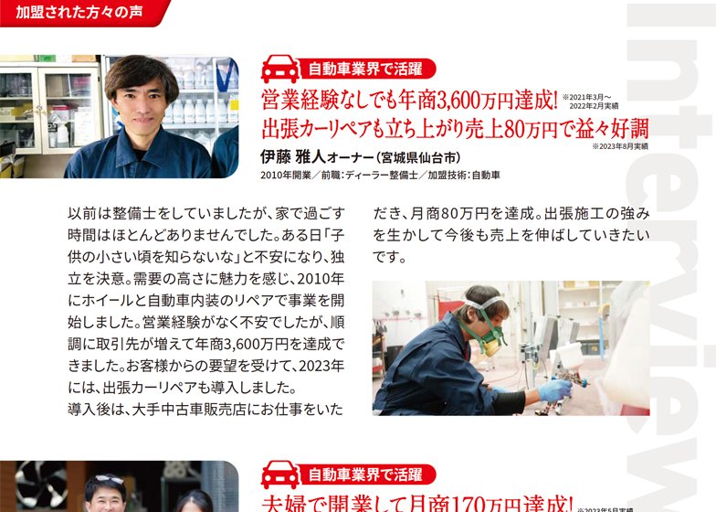 【案件紹介アリ】出張カーリペアで独立