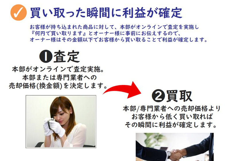 - 《稼げるヒミツ》本部がオンライン査定。売却価格以下で買取れば最短で即日現金化も!