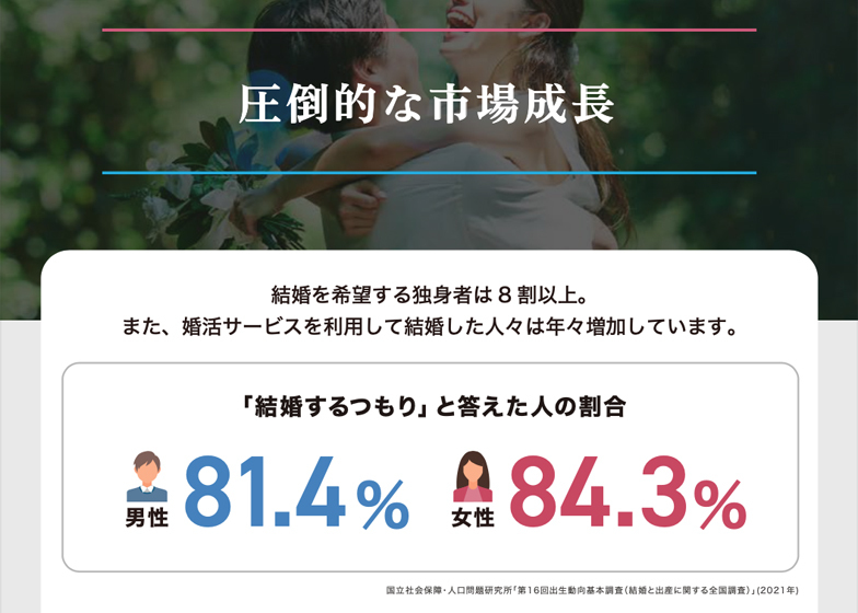 未婚率の上昇はすでに社会問題となり、婚活サービスは「社会的ビジネス」として求められています。