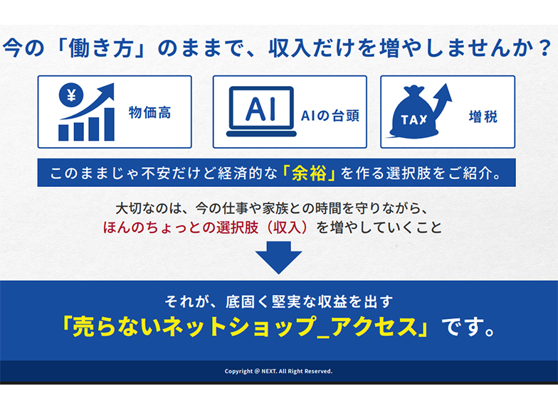 - あなたの代わりにシステムが、365日働き続けてくれる新ビジネスです。集客をしなくても安定して売上を作ることが見込めるECサイトを運営できます。