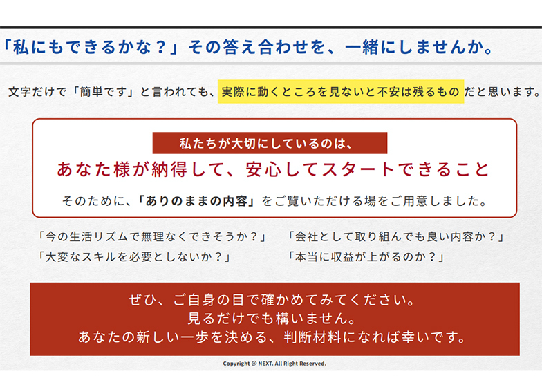 NEXTは、ネット上の物販事業で10年以上の実績があり、豊富なノウハウを持っています。