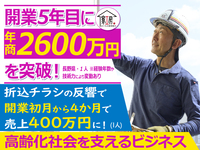 - 個人で事業展開可能!充実の技術研修だけでなく、開業3日間の本部スーパーバイザーの営業同行や作業同行があるので安心してスタートできます。