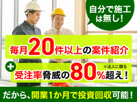 - 小口工事から大口工事まで、幅広く住まいのリフォームのお手伝いができるFC。施工は外注なので、1人で開業可能!