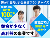 - 障がいをお持ちの方への、行動支援・在宅介護サービスを展開中。来客を想定していないため空中店舗、ワンルーム等での開業が可能です。