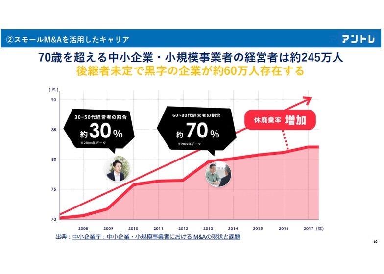 - 2025年までに経営者70歳以上の中小企業は約245万社。