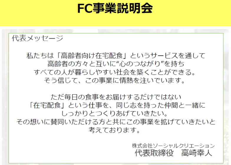 ニコニコキッチン/株式会社ソーシャルクリエーションのフランチャイズ開業プランフランチャイズ
