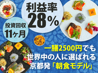 加速するインバウンド需要を追い風に、一膳2500円でも選ばれる[日本の朝食]を提供する[M&Maison KYOTO]。職人不要&15時終業で、利益率28%を実現し1年以内に投資回収可能。地域に愛される朝食文化を創りませんか。