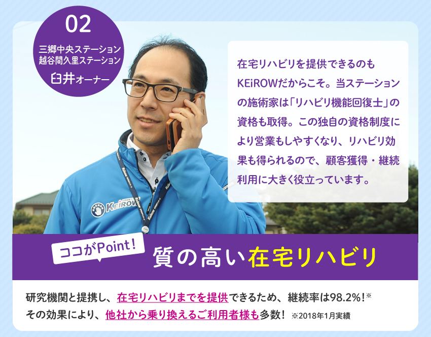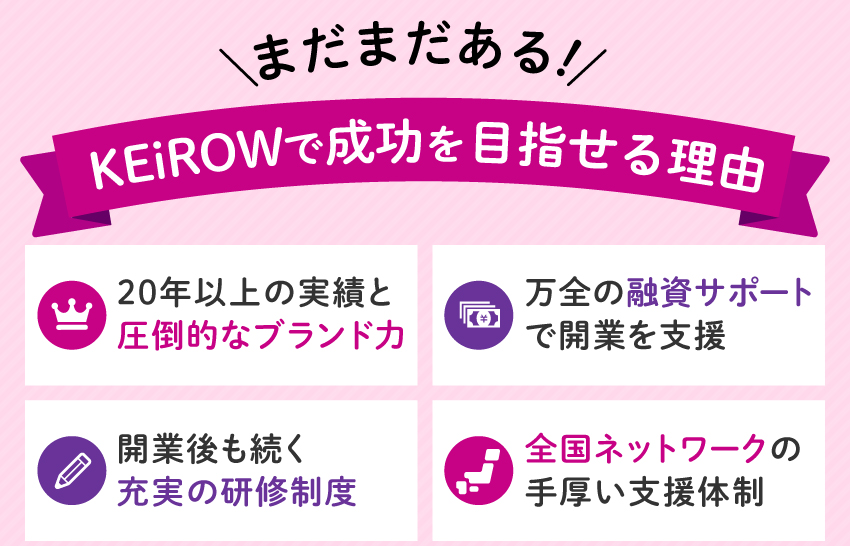 KEiROW(ケイロウ)/株式会社HITOWA ライフパートナーカンパニーのココに注目!フランチャイズ
