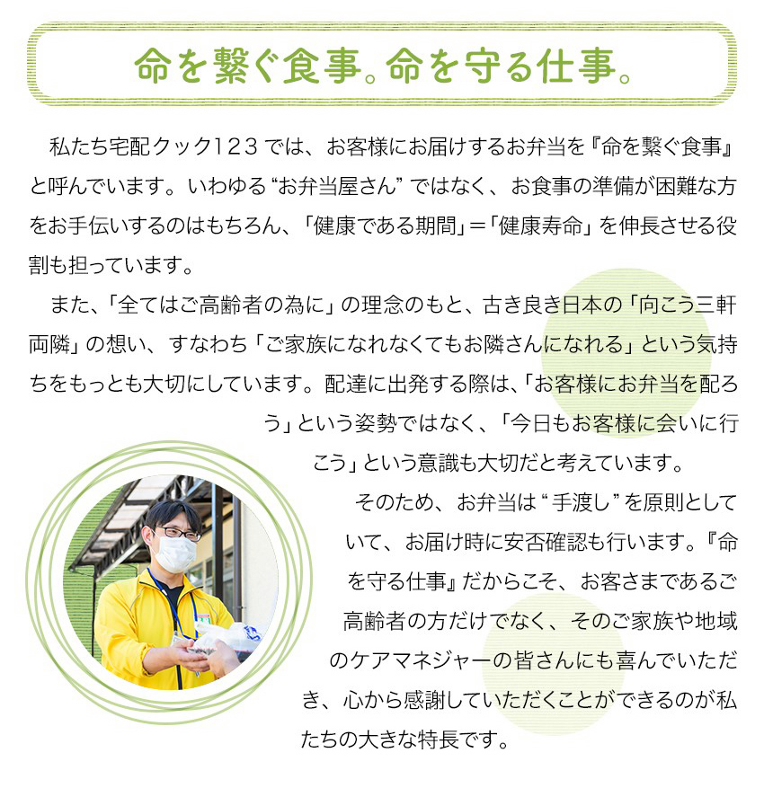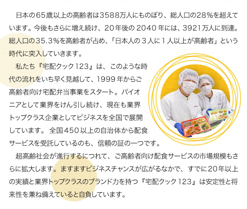 業界トップクラスの配食数!高齢者専門配食サービス『宅配クック1・2・3』