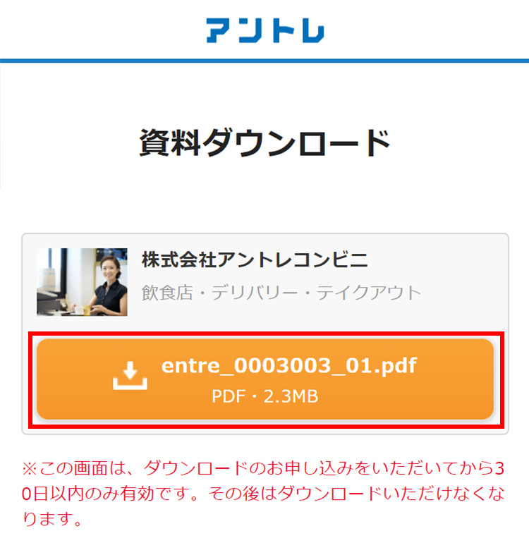 - 件名:【アントレ】資料ダウンロード用URLのお知らせ