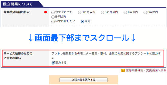 - アントレの会員登録時等、「今後、アントレ編集部からのアンケートや取材・情報提供にご協力いただける」と回答いただいている方に、サービス改善のためのアンケートやモニター募集をお願いするメールを配信しています。